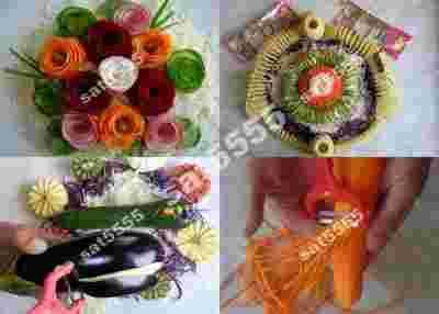 Obsluga jest bardzo prosta: warzywa temperujemy w taki sposób jak olówki i z tego co wyszło zwijamy kwiaty. Przed temperowaniem warzywa, obierz je lekko konciasto lub wytnij podłużne rowki.