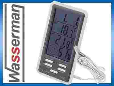 Jednoczesne wyświetlanie czasu, temperatury wewnątrz, na zewnątrz oraz wilgotności wewnątrz