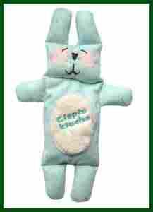 to coraz bardziej zyskujące na popularności "naturalne docieplacze". W środku zabawki umieszczony jest woreczek z pestkami wiśni . Specjalnie oczyszczone i wysuszone pestki wiśni posiadają właściwości kumulowania stałej temperatury, także podgrzane w kuchence mikrofalowej/piekarniku lub włożone do zamrażarki oddają ciepło lub zimno przez długi czas.