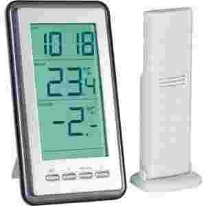 Na trójliniowym wyświetlaczu wskazywane są jednocześnie informacje dotyczące godziny, temperatury wewnątrz i na zewnątrz. Minimalne i maksymalne wartości są automatycznie zapisywane, dzięki czemu mogą być w razie potrzeby odczytane.