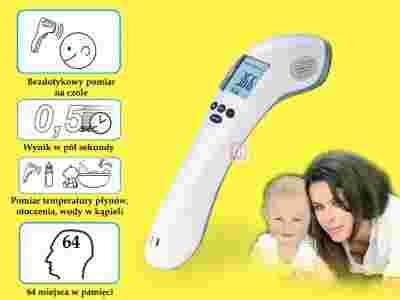 Termometr bezdotykowy do pomiaru temperatury na czole, temperatury otoczenia, przedmiotów i płynów (np. mleka w butelce)