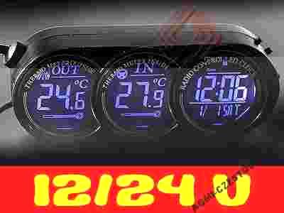 TERMOMETR SAMOCHODOWY ILUMINATOR 3 ZEGARY 12/24V