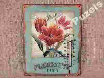 TERMOMETR WEWNĘTRZNY NA BLASZANEJ TABLICY KWIATY