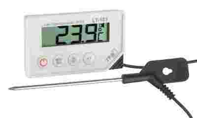 • kontrola pomieszczeń magazynowych i produkcujnych • duży, czytelny wyświetlacz LCD • pamięć wartości MIN/MAX • wprowadzanie wartości progowych temperatury i wilgotności, ich przekroczenie sygnalizuje sygnał akustyczny • wykonanie wodoszczelne • czujnik na przewodzie 1m • zawieszka, podstawka oraz magnes • przełączanie jednostek oC/oF