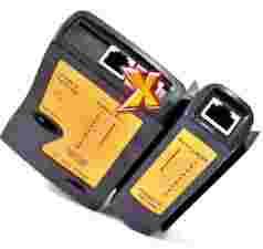 Tester okablowania sieciowego zakończonego wtykami RJ45 oraz okablowania telefonicznego z wtykami RJ11. Zasilany baterią 9V (w zestawie nie ma baterii). Przeznaczony do testowania kabli typu: UTP, FTP, STP ( 8 żył ) oraz kabli telefonicznych RJ12, RJ11 ( 6 żył ).