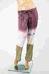 nogawki szersze, lekko zwężane do dołu, na dole ściągane i wiązane troczkami