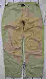 A - szerokość w pasie B - szerokość w biodrach C - wysokość stanu mierzona do kroku D - długość nogawki zewnętrznej E - szerokość uda F - szerokość nogawki