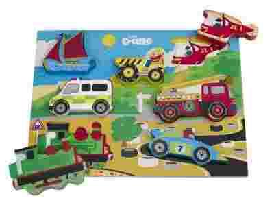 Wspaniałe kolorowe puzzle z różnymi pojazdami to doskonała propozycja na pierwszą układankę dla malucha. Bardzo grube i masywne elementy są łatwe do uchwycenia małymi rączkami a ten sam obrazek na płycie stanowi cenną podpowiedź dla dziecka. Oprócz układania puzzle te będą idealne także do wszelkich zabaw gdzie można wykorzystać figurki pojazdów (mają one tę cechę, że potrafią stać) szczególnie tak lubiane przez dzieci scenki z własnymi historyjkami.
