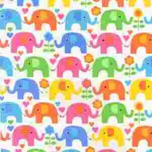 TIMELESS TREASURES ELEPHANTS and FLOWERS IN WHIT