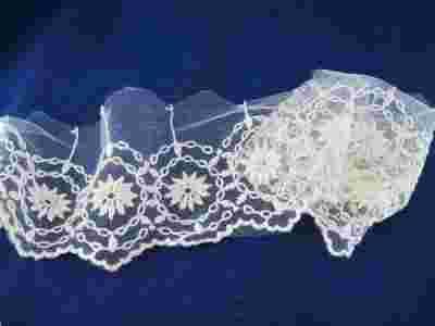 Tiul haftowany ekri szer.10cm idealny do wykończenia sukni ślubnej.Cena za 1mb.