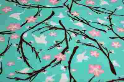 Tkanina POLAR w PTASZKI na turkusie # F 1820a