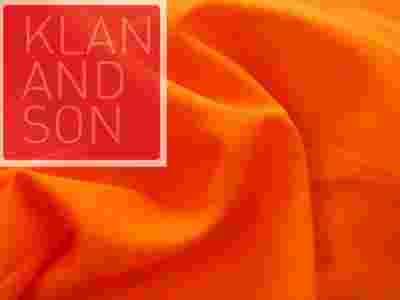 Dość gruba, lekko sztywna, lejąca, tkanina poliestrowa w kolorze ostrego pomarańczu.