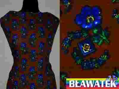 Tkanina wiskoza, brąz, kwiaty folk