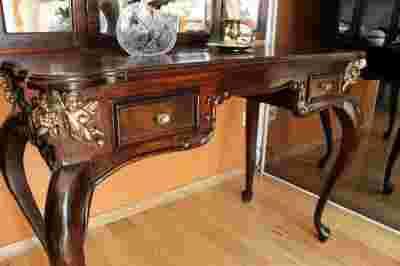 Toaletka biurko z lustrem w całości z drewna.