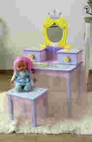 Przepiękny mebl do pokoju małej dziewczynki - toaletka ze stołeczkiem z serii "Mała Księżniczka".