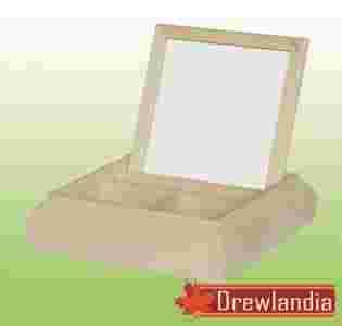 Podzielona przegródkami na 3 części. W wieku  lustro o rozmiarze samego szkła 13,5x13,5 cm