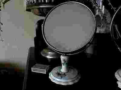 TOALETOWE RETRO LUSTERKO, PORCELANOWA PODSTAWA,