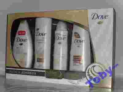 Witam na aukcji W ofercie ORYGINALNY DAMSKI zestaw DOVE NUTRIUM MOISTURE KOLEKCJA JEDWABISTA 4el. komplet zawiera: - Dezodorant w aerozolu 24H DOVE SILK DRY 150ml - Żel pod prysznic SILK GLOW 250ml