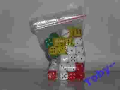 Witam na aukcji W ofercie KOŚCI DO GRY (50szt) w tradycyjnym rozmiarze 15mmx15mm. Dobrze "wykończone", wykonane z ciężkiego plastiku, zapakowane w woreczek strunowy. Kolorystyka kości losowa.