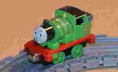 Witam serdecznie Do kupienia, Piotrek (Piotruś, Percy) kolejka (chyba przedstawiać jej nie trzeba) z bajki Tomek i Przyjaciele z serii z magnesami firmy Fisher Price (Take-n-Play) i firmy RC2 Learning Curve (Take Along). Piotrek pojawia się w odcinku Kłopoty w hangarze w którym Gabryś, Henio i Kuba postanawiają zastrajkować. Z biegiem czasu staje się najlepszym przyjacielem Tomka. Piotrek jest czasami lekkomyślny, czasem trochę złośliwy lub bezczelny, lubi wpadać w kłopoty (w drugim sezonie miał pięć wypadków), ale generalnie to bardzo dobra lokomotywa. Używany w stanie jak na zdjęciu. Zabawki firmy Fisher Price z serii Take-n-Play są kompatybilne z serią Take Along firmy RC2 Learning Curve, ponieważ Fisher Price przejął prawa do produkcji zabawek z tej serii od RC2 Learning Curve. Tory nie są przedmiotem sprzedaży.