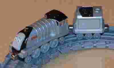 Witam serdecznie Do kupienia tory, Szymek z węglarką (Spencer) z bajki Tomek i Przyjaciele z serii z magnesami firmy Fisher Price (Take-n-Play) i firmy RC2 Learning Curve (Take Along). Szymek jest wielką, srebrną lokomotywą parową - najszybszą na świecie. Jest pewny siebie i uważa się za niezwyciężonego. Ciągle bije rekordy Gabrysia, jednak w odcinku Edek wielki jego lekceważenie przeciwnika spowodowało, że przegrał wyścig z Edkiem, uważanym za najwolniejszą lokomotywę na Wyspie Sodor. Używany w stanie jak na zdjęciu. Zabawki firmy Fisher Price z serii Take-n-Play są kompatybilne z serią Take Along firmy RC2 Learning Curve, ponieważ Fisher Price przejął prawa do produkcji zabawek z tej serii od RC2 Learning Curve.