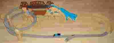 Do kupienia, zestaw Tomek i spadający most (Thomas at Tumblin' Bridge Set) chyba największy z zestawów serii TRACKMASTER, po złożeniu 170 x 50 cm i 35 cm wysokości.