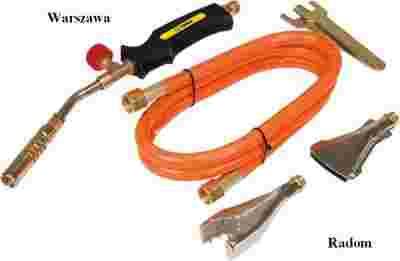 Zestaw do lutowania 2kW, -3 palniki punktowy, -otaczający, - płaski, wąż 1.5 m, -temperatura pracy 1850°C, -średnie zużycie gazu 140 g/h