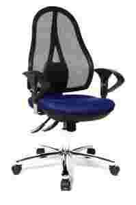 - Tkanina: 100% polipropylen siedzenie na niebiesko; oparcie z siatki: 100% poliester w kolorze czarnym