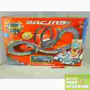 Bardzo długi tor – 425cm z 2 autkami. Tor można budować wg własnego uznania, można tworzyć pętle i wiadukty. Zestaw zawiera znaki drogowe, 2 autka, pilot, bandy,kontrolery prędkości, ładowarki. Maksymalna prędkość autek – 20km/h.