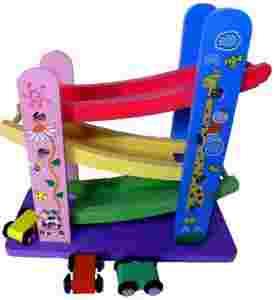 TRZY PIĘTROWA, SZYBKOŚCIOWA ZJEŻDŻALNIA DLA 3 DREWNIANYCH AUT.