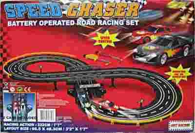 Na torze są bramki zliczające ilość przejazdów. Dołączone są też urządzenia sterujące - dwa "piloty" podłączane przewodem do toru. Dzięki nim można przeprowadzić wyścig. Kto wygra? Żółty czy czerwony samochodzik?