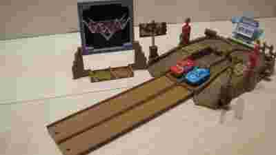 JAK DZIAŁA ZABAWKA: Po naciągnięciu dźwigni z obu stron oddzielnie dziecko/dzieci wciska przycisk i samochody albo jadą prosto który najdalej albo „wylatują” w górę i przelatują przez tablicę z napisem CARS. Tablicę można połączyć z torem „na sztywno” albo postawić ją obok. Oprócz tego jest tablica wyników do przekręcania (do trzech)przez dzieci oraz dystrybutory paliwa, które mają ruchomą srebrną część po wciśnięciu wierzchołka. Super zabawa dla fana/fanów filmu „Auta” Do robienia zdjęć zapomniałam włożyć jeden płotek - na zdjęciu po lewej stronie tablicy wyników – będzie dołączony do zestawu.