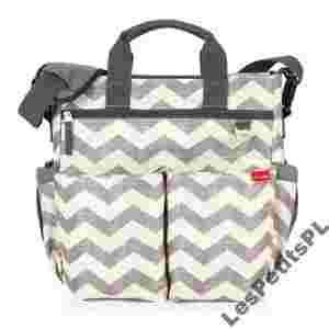 TORBA DO WÓZKA SKIP HOP DUO SIGNATURE - niezastąpiona torba dla nowoczesnych rodziców. „Torba do wózka” – słowo klucz. Jako rodzice, doskonale zdajemy sobie sprawę, jak wiele „niezbędnych” poza domem rzeczy musimy mieć zawsze w zasięgu ręki. SKIP HOP projektując torbę model DUO SIGNATURE skupił się jej zastosowaniu, tworząc bardzo pojemną i praktyczną torbę z mnóstwem kieszonek. Torba dla mam SKIP HOP DUO jest torbą interesującą, nie tylko wizualnie. Wewnątrz kryje, aż 10 dedykowanych kieszonek (na portfel, klucze, przybory do pisania, telefon, kosmetyki, i wiele innych), dzięki którym będziemy mogli się dobrze „zorganizować”. Pomysłowym dodatkiem torby, jest turystyczna mata, którą znajdziemy w jednej z przegródek. Można ją wykorzystać podczas przewijania maluszka lub jako wodoodporną podkładkę do siedzenia podczas spacerów. Torba do wózka DUO SIGNATURE wyposażona jest w specjalne, opatentowane uchwyty na klips, dzięki którym torbę ”na ramię” można błyskawicznie zamienić na „torbę do wózka”. Mocowanie to jest uniwersalne – a torba DUO może być przymocowana do każdego rodzaju i modelu wózka.