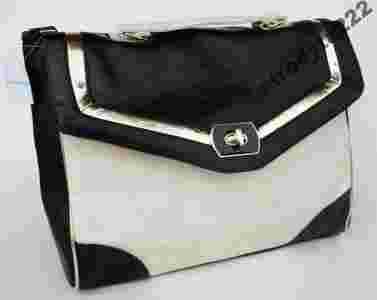 Aktówka czarno-biała (biel przełamana popielem) ze złotym