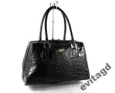 Wielkość: Duża (mieszcząca A4) Stan: Nowy Płeć: Produkt damski Waga (z opakowaniem): 1.00 [kg] Materiał dominujący: Skóra naturalna licowa Kolor: Czerń Rodzaj: Do ręki, Kuferek, Na ramię