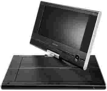The screen is a reasonable 9in (16:9 of course) with a resolution of 640 x 220 pixels, but Toshiba also offers a 7in model, the SD-P71, which you can find for around £100. The screen is set into the top section with speakers on either side, and below it is a neat row of black buttons that allows you to control disc playback and access the setup menu, next to a cute circle of menu navigation controls. But the best part is that this entire top section can be swivelled through 180 degrees in case you're viewing the screen from an awkward angle, perhaps in the back seat of the car, and it also tilts back until it lies flat.