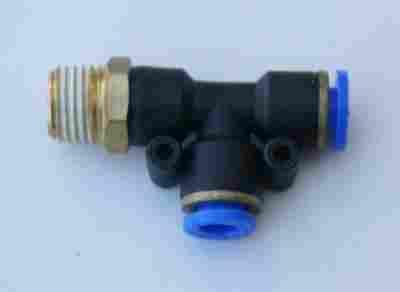 TRÓJNIK L WTYKOWY QUICK AUTO WĄŻ 6/4MM GWINT 1/4 –złączka wtykowa automatyczna na węże o średnicy wewnętrznej 4mm i grubości ścianki 1mm (6/4). Temperatura pracy: -20°C-60°C, Ciśnienie pracy: 0-10 bar, uszczelnienie NBR.