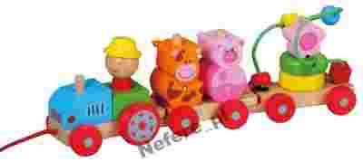 1. klocków: każdy wagonik złożony jest z kilku klocków, więc dziecko ćwiczy koordynację ruchową oraz umiejętność logicznego myślenia i łączenia przedmiotów. Lokomotywa składa się z podstawy i trzech klocków, wagonik ze zwierzątkami składa sie z podstawy i czterech klocków,ostatni wagonik składa sie z podstawy i trzech klocków