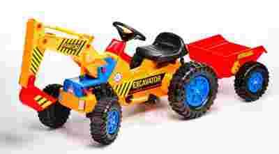 Starannie wykonany traktor wyposażony w koparkę oraz przyczepę , którą można odczepić. Pojazd wytworzony został z hartowanego plastiku bardzo wytrzymałego.