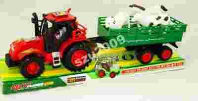 traktor z przyczepą + koń, krowa , baran