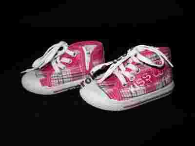 Dodatkowe informacje: Stan: Używany Płeć: Dziewczynki Rozmiar: 21.00 Długość wkładki wew. : 14.00 [cm] Materiał: Tkanina Rodzaj zapięcia: Sznurowadła Kolor: Biel, Odcienie różu, Inny kolor
