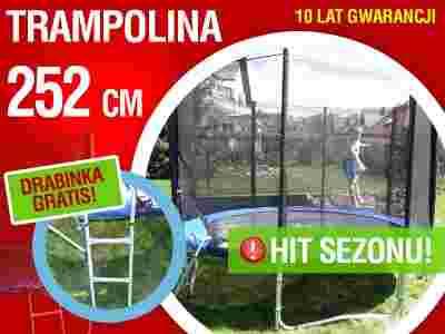 TRAMPOLINA 252cm podwójne nogi +siatka +drabinka
