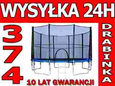 TRAMPOLINA 374cm 12FT Z DRABINKĄ SIATKĄ OGRODOWA