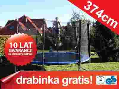 TRAMPOLINA 374cm + SIATKA +DRABINKA WYPRZEDAŻ