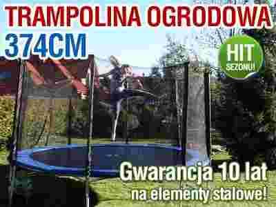 TRAMPOLINA 374cm + SIATKA +DRABINKA WYPRZEDAŻ