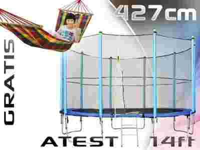 DO TRAMPOLINY DOŁĄCZAMY SUPER WYGODNY HAMAK Z LISTWAMI.