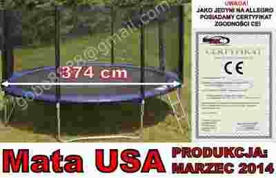 TRAMPOLINA Z SIATKĄ 374CM+DRABINKA+MATA U.S.A 2014
