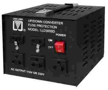 Konwerter do podłączenia zasilania urządzeń 110 V lub 115 zasilane do standardowego gniazdka 230V. Nadaje się do eksploatacji urządzeń, np. z USA, Japonii, Ameryce Południowej, itp.