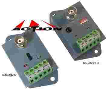 Nadajnik z odbiornikiem służy do przesyłania sygnału z jednej kamery za pomocą skrętki komputerowej na większe odległości zapewniając przesył sygnału wizyjnego do 2400 metrów dla kolorowej kamery i 3000m dla czarno białej kamery (skrętka komputerowa 5 kategorii).
