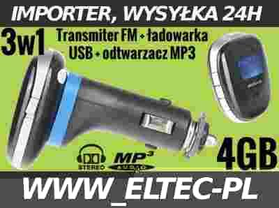TRANSMITER FM 3w1 model T61 z dźwiękiem STEREO
